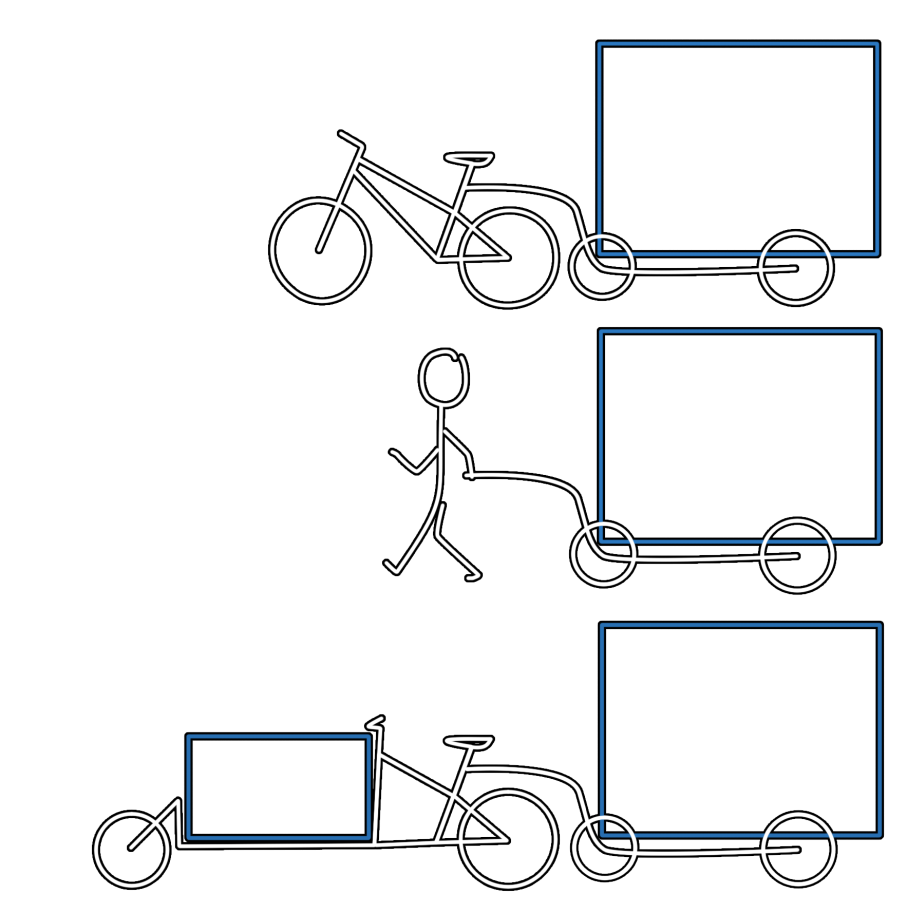 Wir haben ein Elektro-Konzept entwickelt, mit dem Fahrradanhänger schwerelos wirken und stets intuitiv und sicher dem Fahrrad folgen.